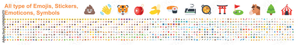 Fototapeta na wymiar - All type of emojis, stickers, emoticons flat vector illustration symbols. Hands, man, woman, workers, fruit drinks food.