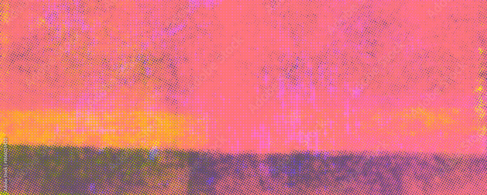 Fototapeta na wymiar - Bright pink riso print texture background with linocut print effect. Hand drawn block ink printing with halftone and distress texture. Colorful retro grunge background overlay with text place..