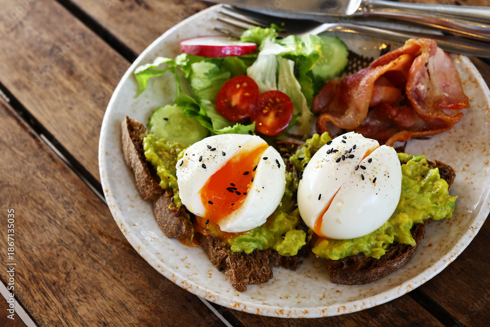 Fototapeta na wymiar - traditional breakfast with fried egg and salad.