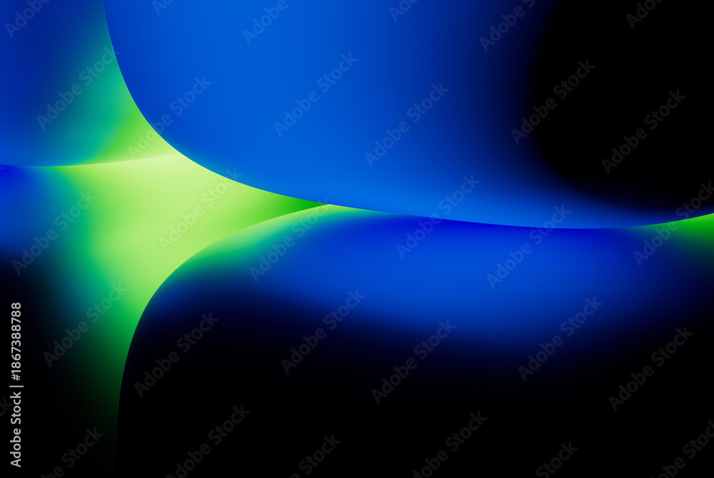 Fototapeta na wymiar - Abstract blue background with green neon light, simple geometric wallpaper. Minimalist 3d illustration.