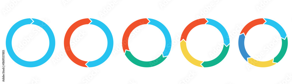 Fototapeta na wymiar - Circle diagram infographic set. Rotation round cycle vector scheme process template. 2, 3, 4, 5 parts..