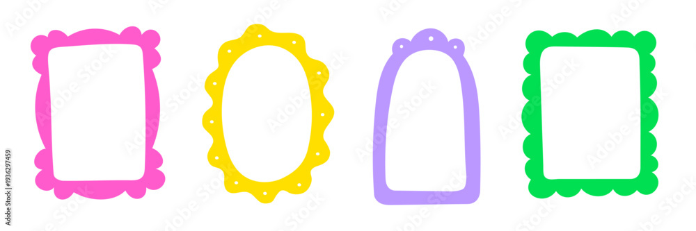 Fototapeta na wymiar - Doodle frame border hand drawn cute set. Fun doodle frame border square, rectangle line photo picture shapes. Cute cartoon children kids squiggly scrapbook stamp vintage card. Vector illustration.