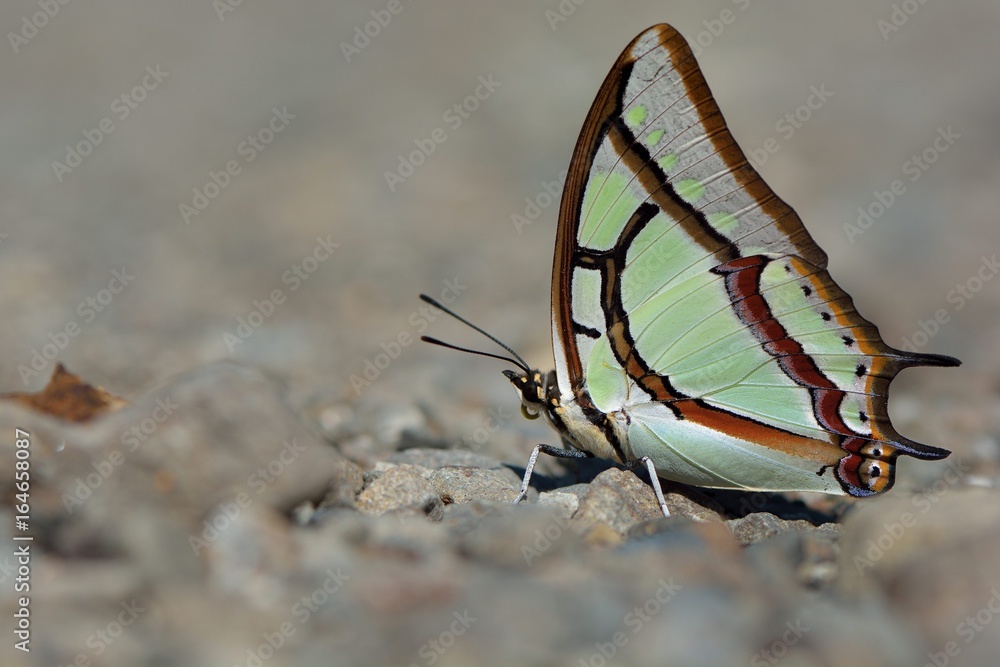 Fototapeta na wymiar - Butterfly from the Taiwan (Polyura narcaea meghaduta)Small two tail butterfly in water.