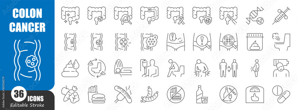 Fototapeta na wymiar - Colon cancer thin line icon . Editable stroke . Vector ..