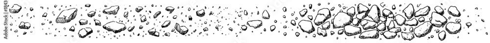Fototapeta na wymiar - Hand drawn vector banner displaying clustered gravel and small stones.
