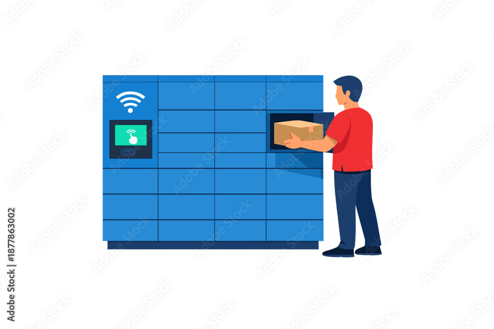 Fototapeta na wymiar - Man depositing a package into a smart locker.