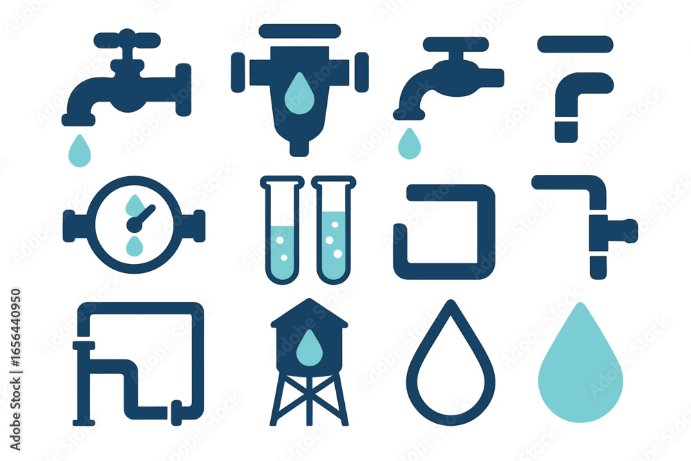 Fototapeta na wymiar - Water supply and plumbing icons.