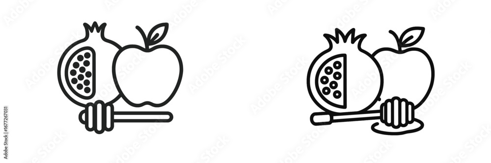 Fototapeta na wymiar - And pomegranate with honey dipper icon.