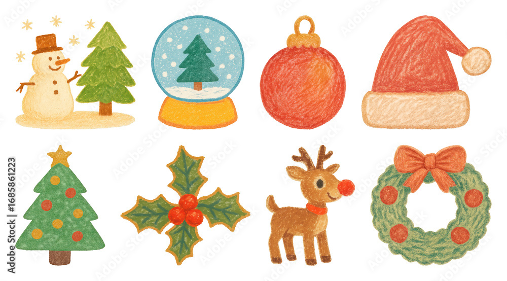 Fototapeta na wymiar - PNG Whimsical festive holiday illustrations, element set on transparent background.