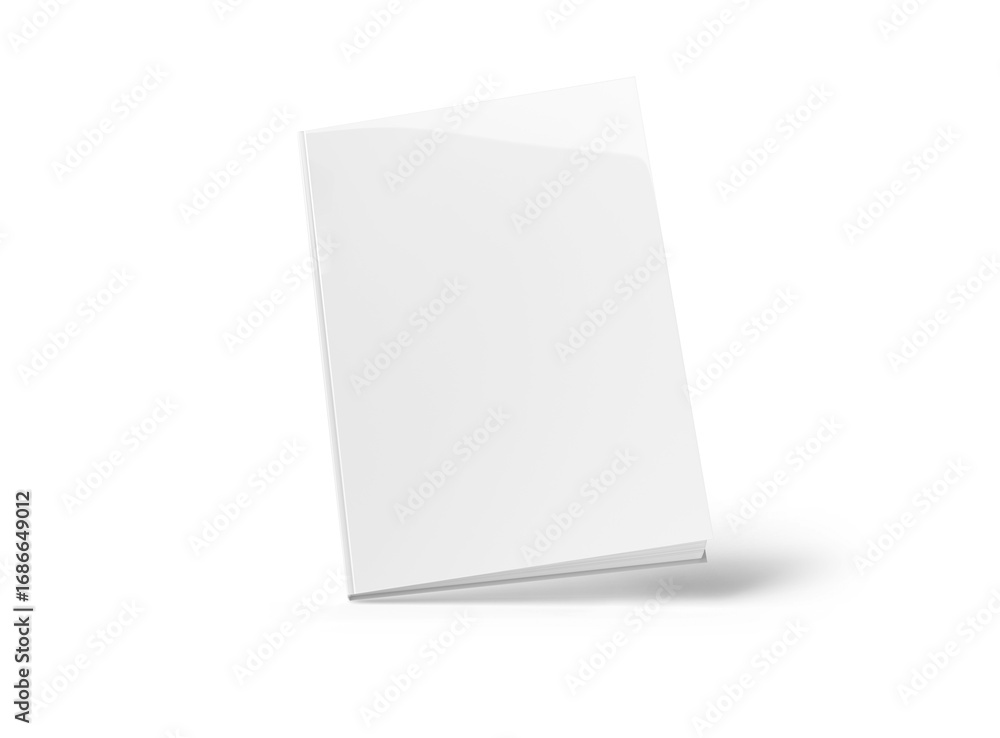 Fototapeta na wymiar - Floating white book on transparent background. Isolated blank book cover mockup 3D rendering.
