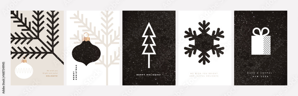 Fototapeta na wymiar - Christmas and New Year Cards Collection. Elegant vector illustrations for greeting card, party invitation card, website banner, social media banner, marketing material..