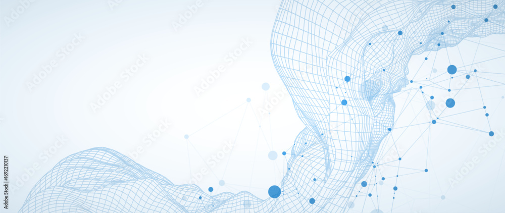 Fototapeta na wymiar - Template for science or technology presentation. Plexus style background with wireframe wave..