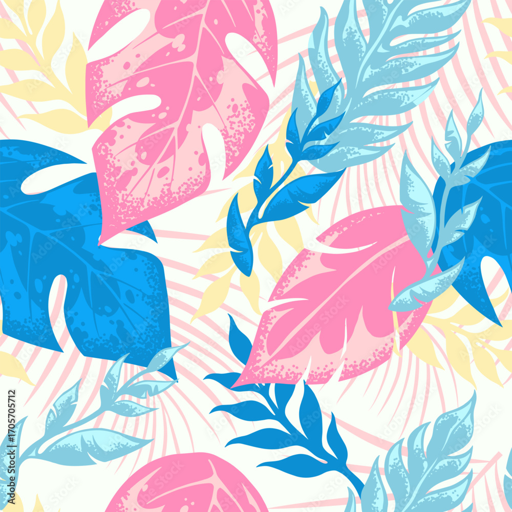 Fototapeta na wymiar - Colorful tropical leaves pattern in vibrant hues.