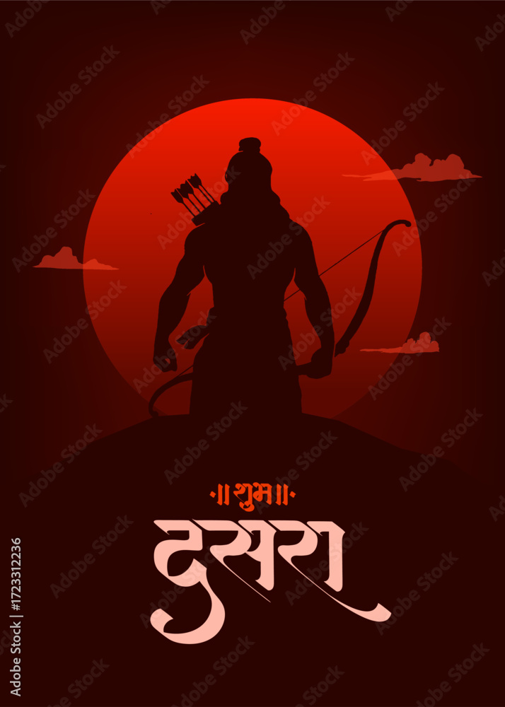 Fototapeta na wymiar - "Shubh Dasara" Marathi, Hindi Calligraphy written text means Happy Dussehra with Shree Ram silhouette, illustration, sketch for social media banner design template.