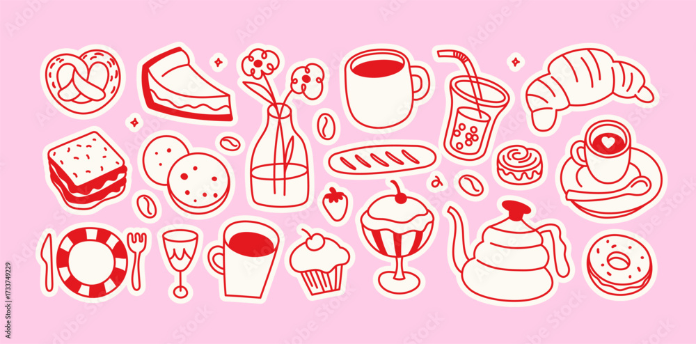 Fototapeta na wymiar - Vector hand drawn graphics for advertising, branding, posters and banners, funny cartoon illustrations, prints and stickers, brunch cafe , bakery concepts, specialty coffee shops menu elements.