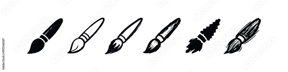 Fototapeta na wymiar - Diverse Paint Brush Icons: Solid, Outline, Sketch, and Pixel Art Styles..