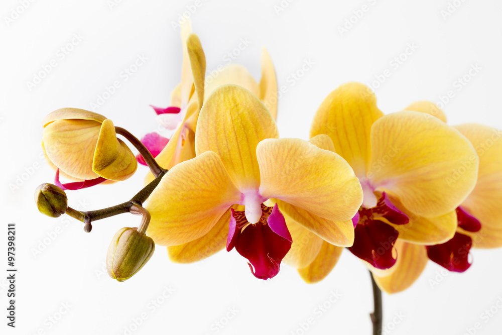 Fototapeta na wymiar - Beautiful yellow orchid on the white background..
