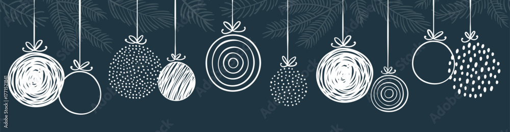 Fototapeta na wymiar - Elegant Christmas baubles seamless pattern, hand drawn balls - great for textiles, wallpapers, invitations, banners - vector surface design.