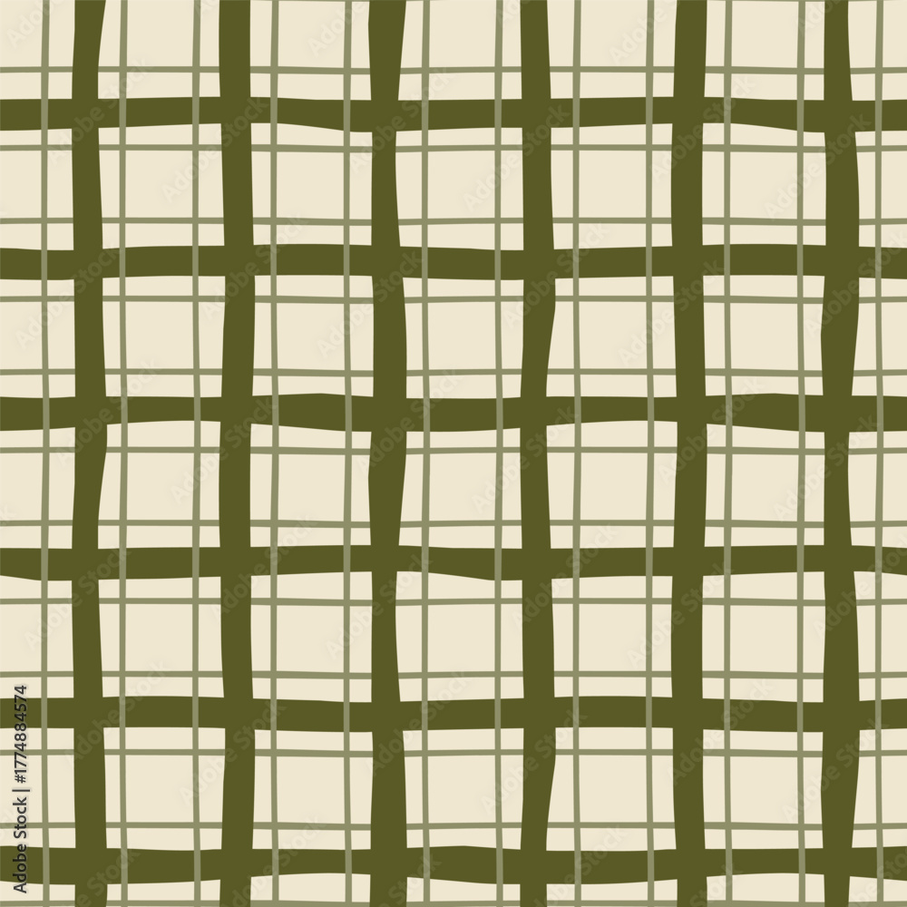 >Fototapety na wymiar>Wybrane motywy - zobacz więcej !>Owoce>Green checkered Christmas plaid seamless pattern. Hand drawn winter holiday tartan plaid. Scottish cage textile design, cozy traditional New Year repeat background, fabric, print, wrap paper in vector