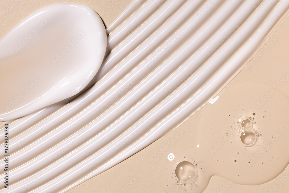 Fototapeta na wymiar - samples of cosmetic care products smear of cream gel texture on a beige background.
