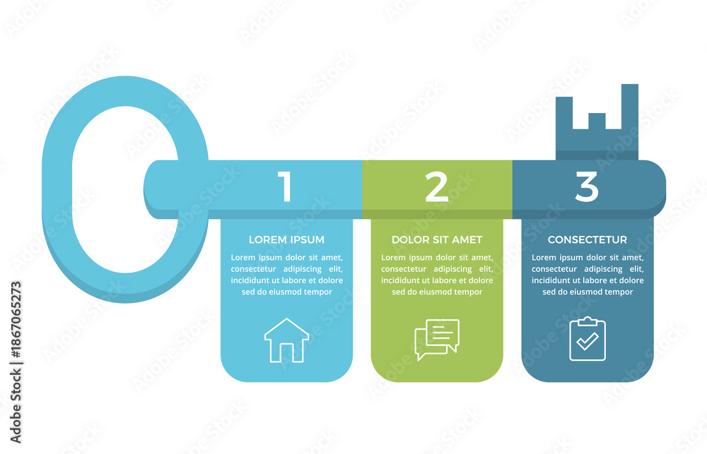 Fototapeta na wymiar - Infographic template showing key to success concept with three numbered colorful sections.