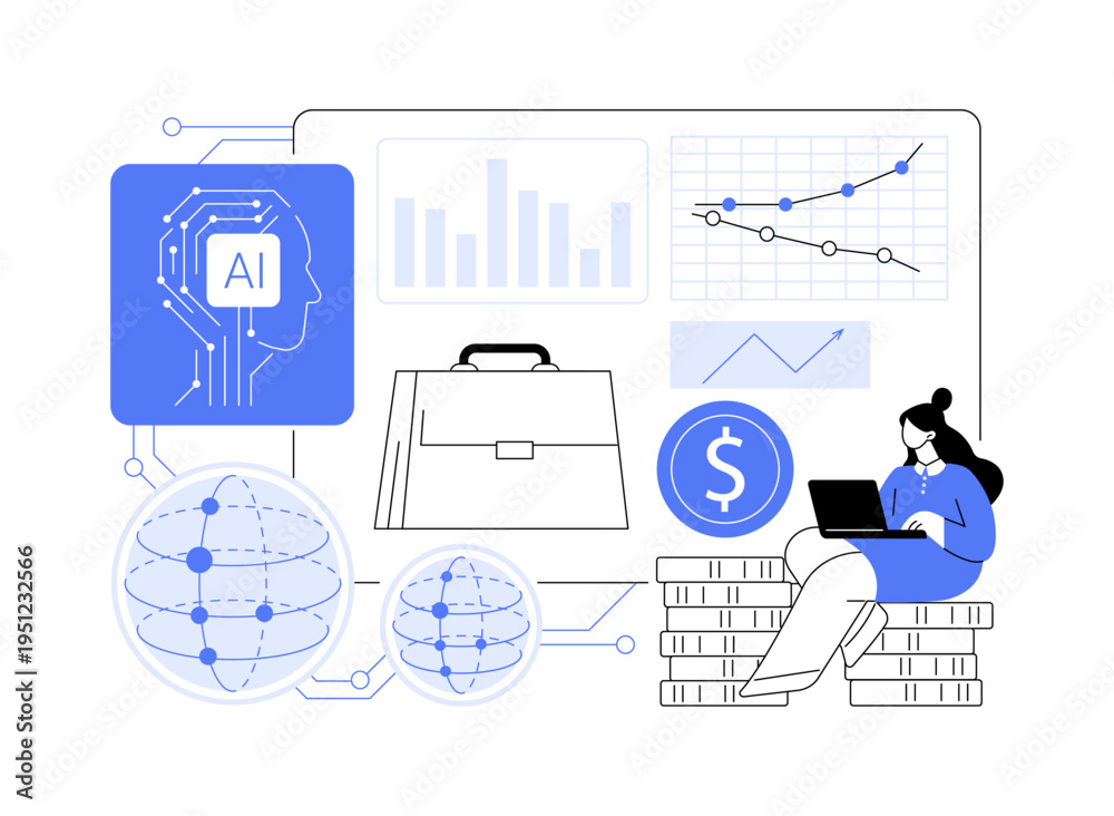 Fototapeta na wymiar - AI-Automated Quantum Finance Portfolio Analysis abstract concept vector illustration..