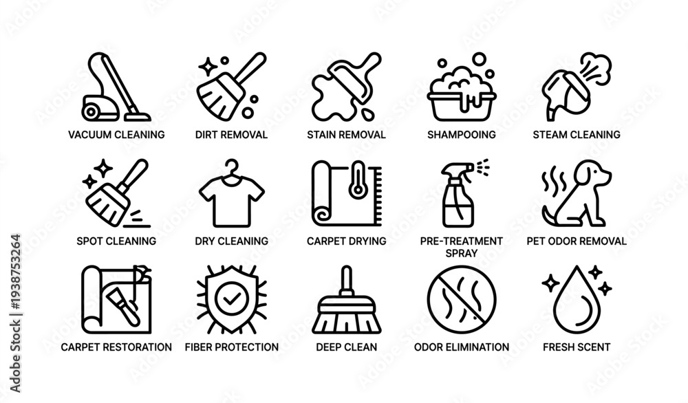 Fototapeta na wymiar - Comprehensive cleaning icon set for diverse cleaning services and solutions.