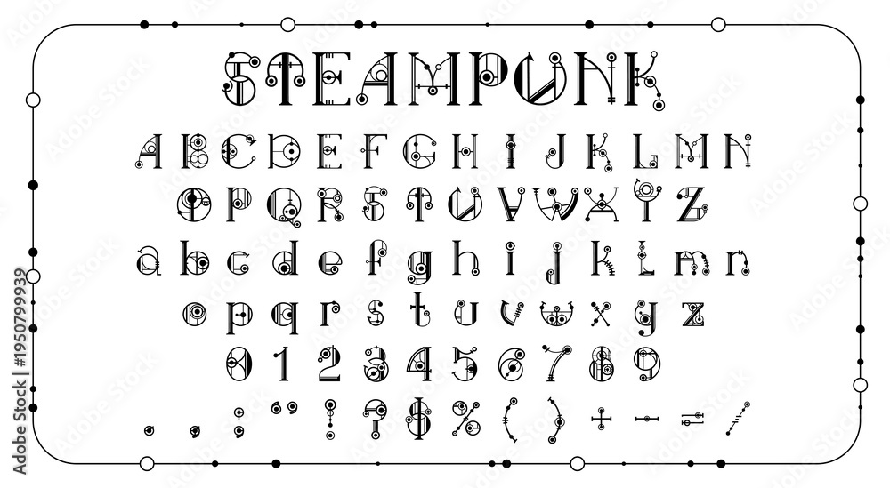 >Fototapety na wymiar>Wybrane motywy - zobacz więcej !>Paryż>Machine steampunk font, mechanic gear typeface letters. Vector vintage steampunk type english alphabet set with letters and numbers made of steam engine pipes, rivets and gears. Retro industrial font