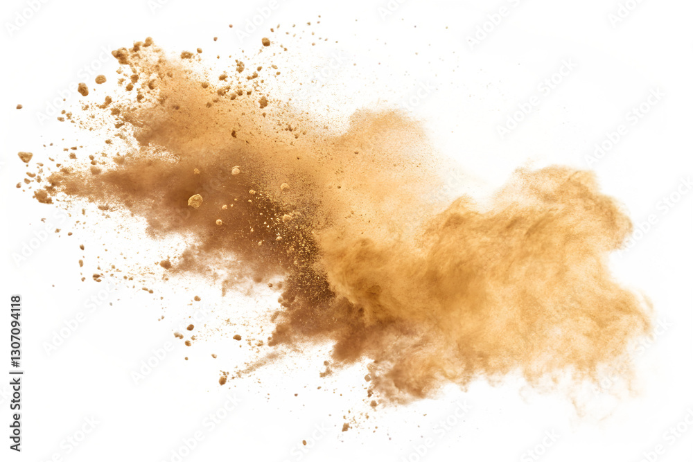 Fototapeta na wymiar - Brown dust exploding in the mid-air isolated on white background.