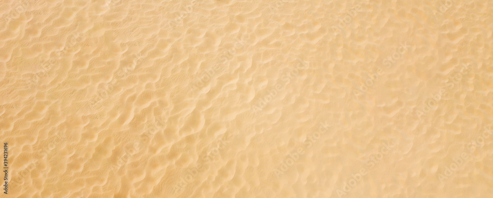 Fototapeta na wymiar - Top view on a pattern of clean beach sea sand. Panoramic background with texture..