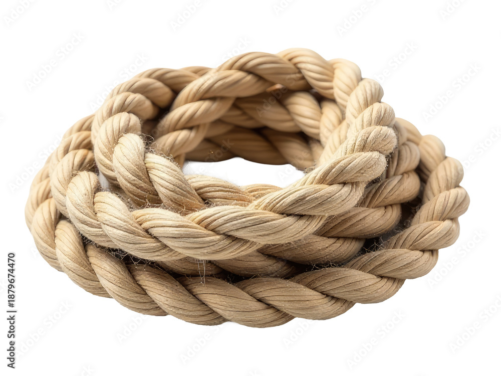 Fototapeta na wymiar - A coil of rope on a white background, useful for decoration or illustration.