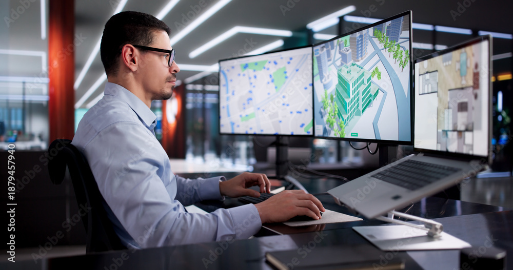 Fototapeta na wymiar - Young Hispanic Male Using CAD Software.