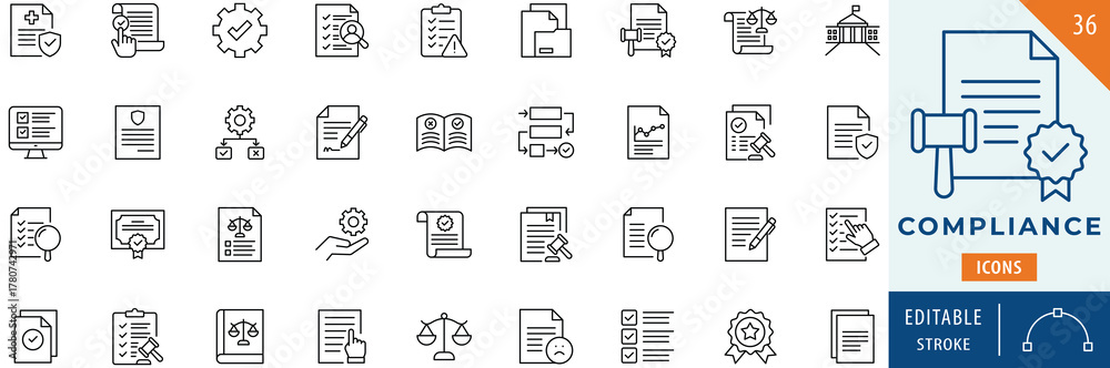 Fototapeta na wymiar - Compliance icon collection set. Editable stroke..