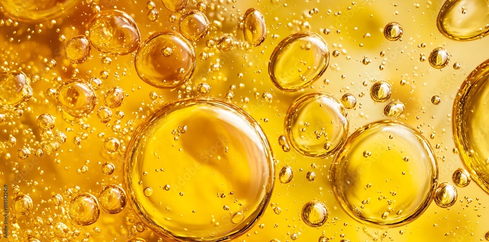 >Fototapety na wymiar>Wybrane motywy - zobacz więcej !>Polska>Abstract golden background of cosmetic essence or skin cells. 3D rendering of serum or oil capsules with collagen and vitamin ingredients. Moisturizing liquid gel texture macro view