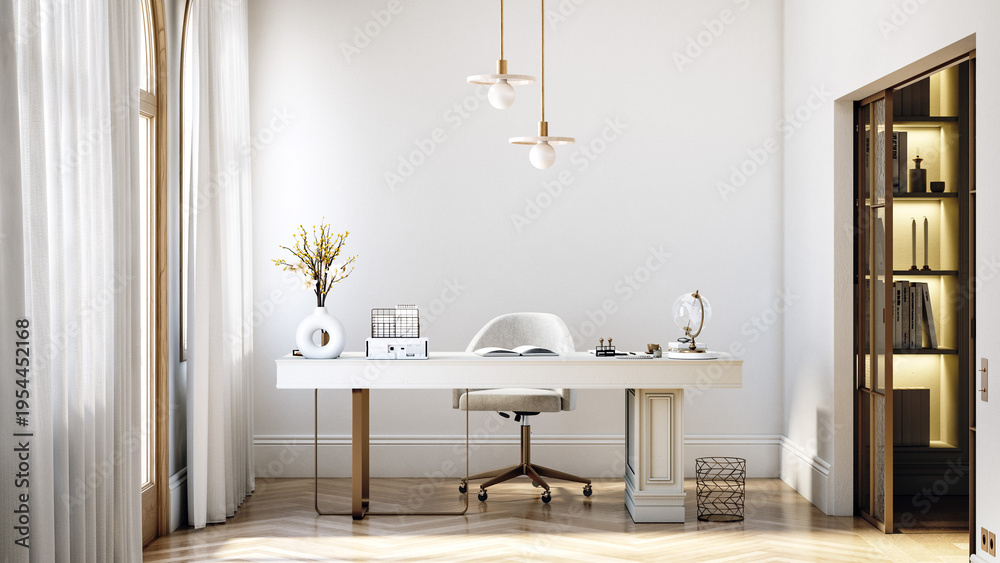 Fototapeta na wymiar - Cozy modern work office at home, 3d render.