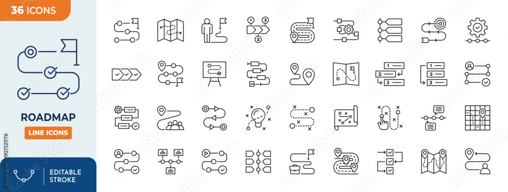 Fototapeta na wymiar - Roadmap icon set. Outline icons collection. Editable stroke. Vector illustration.