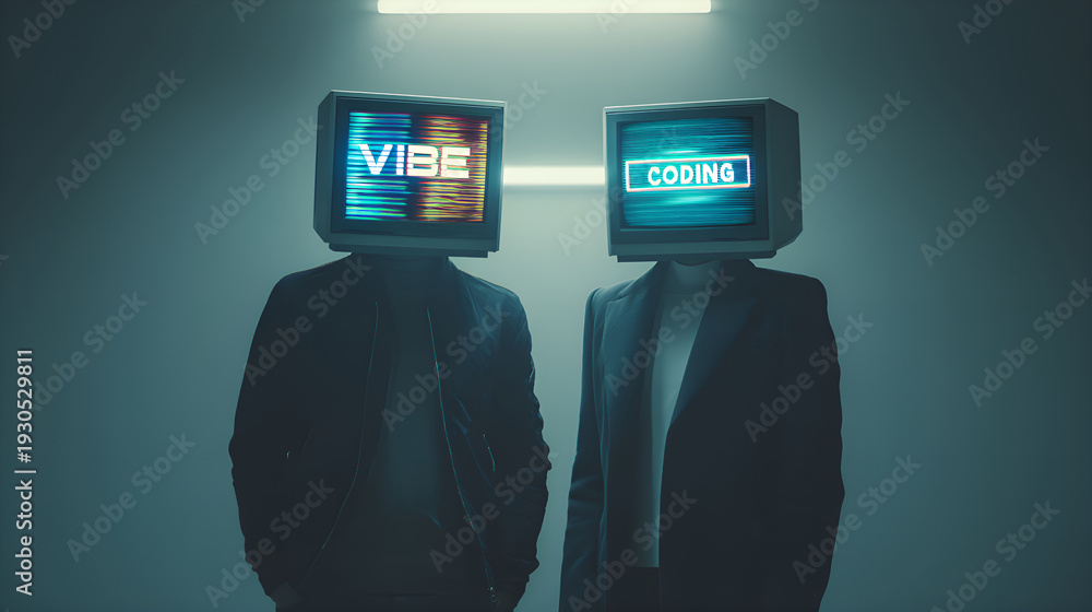 Fototapeta na wymiar - Screen heads representing vibe and coding concepts.