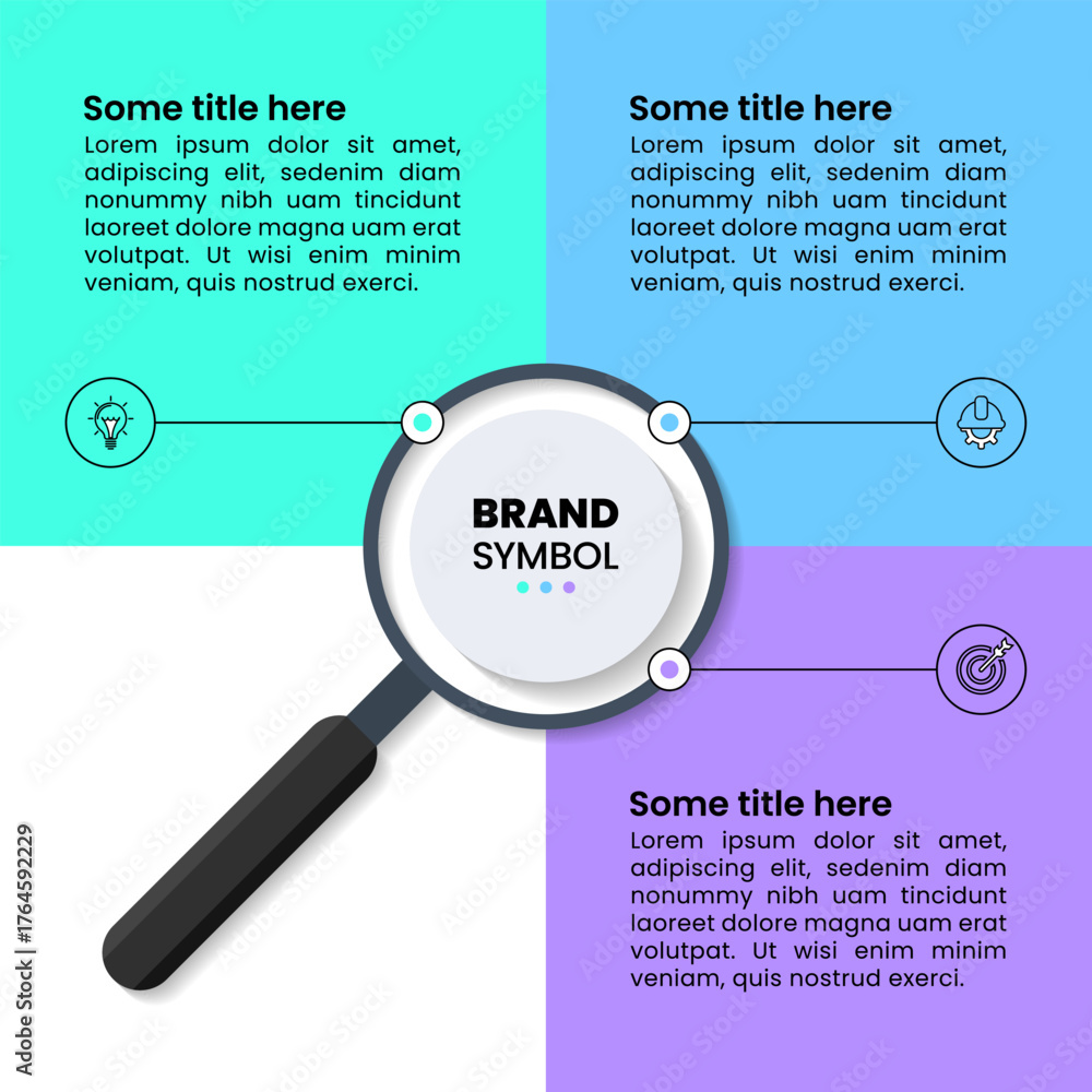 Fototapeta na wymiar - Infographic template. Magnifying glass with 3 icons.