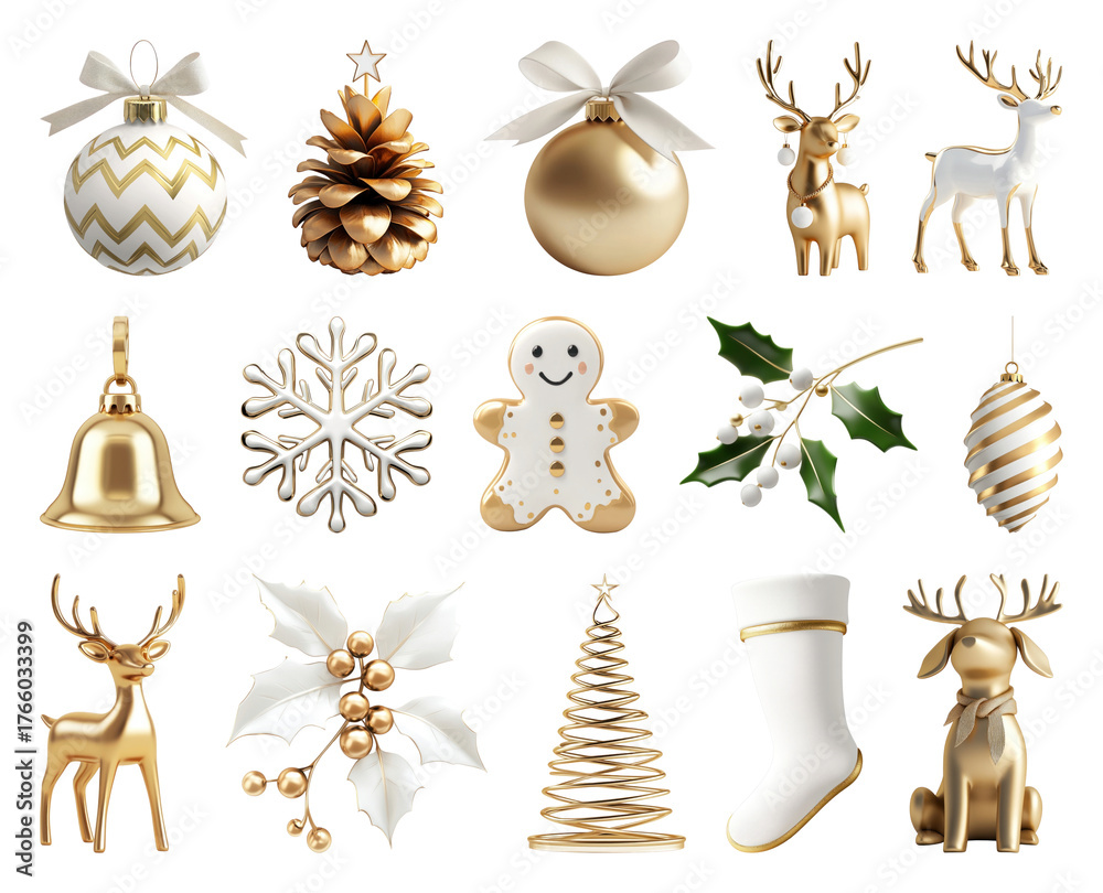 Fototapeta na wymiar - PNG Golden festive Christmas decorations collection, element set on transparent background.