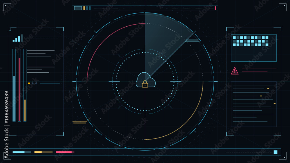 Fototapeta na wymiar - Monitoring data security on a user interface in a digital system with charts and indicators at nighttime.