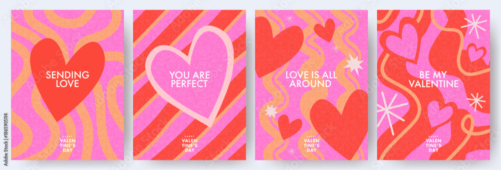 Fototapeta na wymiar - Creative concept of Happy Valentines Day cards set. Modern abstract art design with hearts, wavy and liquid shapes. Templates for celebration, ads, branding, banner, cover, label, poster, sales.