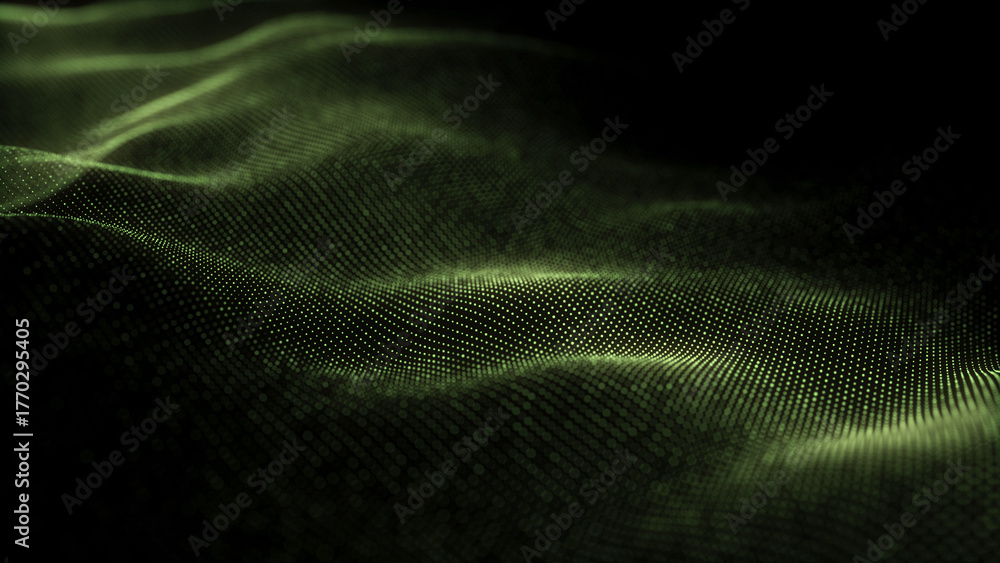 Fototapeta na wymiar - Yellow wave of particles and lines. Big data visualization. Abstract background with a dynamic wave. 3d rendering..