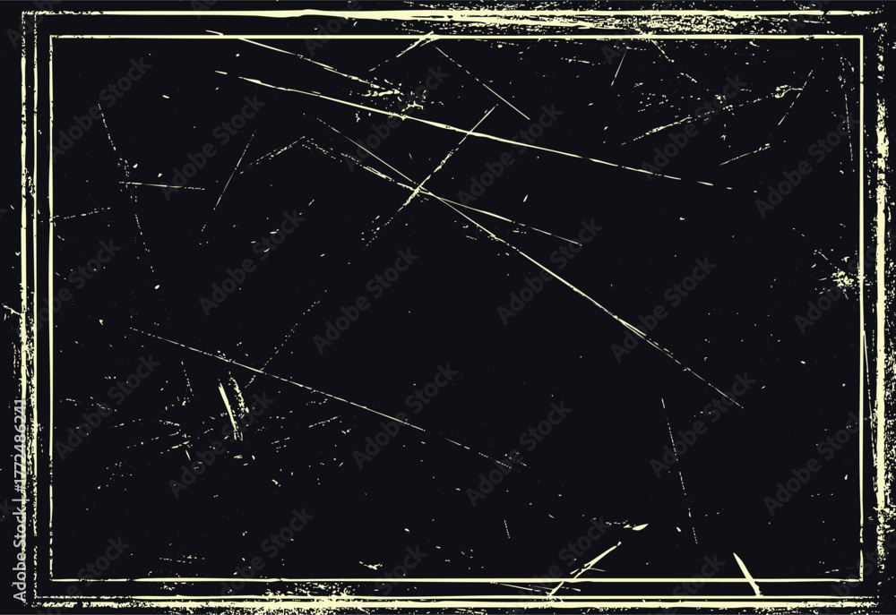 Fototapeta na wymiar - Dark background with distressed textured border and scratches grunge black.