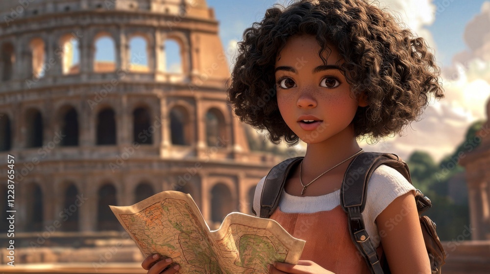 Fototapeta na wymiar - Exploring ancient wonders young traveler in rome with map historical landmark outdoor wide angle adventure.