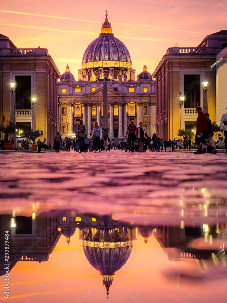 >Fototapety na wymiar>Wybrane motywy - zobacz więcej !>Rzym>St. Peter's Basilica in the evening from Via della Conciliazione in Rome. Vatican City Rome Italy. Rome architecture and landmark. St. Peter's cathedral in Rome. Italian Renaissance church.