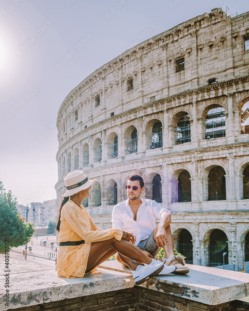 Fototapeta na wymiar - young couple mid age on a city trip in Rome Italy Europe.