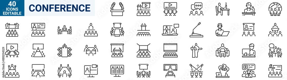 Fototapeta na wymiar - Seminar or Conference web line icons editable icons set. Conference icon set. vector illustration.