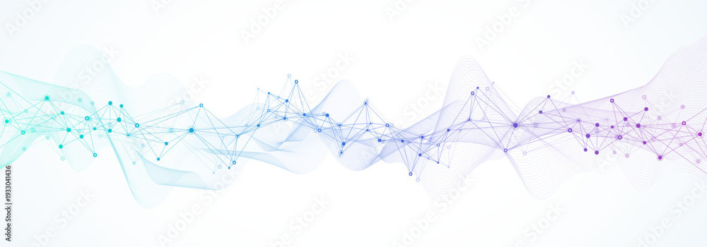 Fototapeta na wymiar - Abstract tech network connection dots. Digital background and big data technology. Blue background with plexus lines effect. Geometric background with abstract mesh..