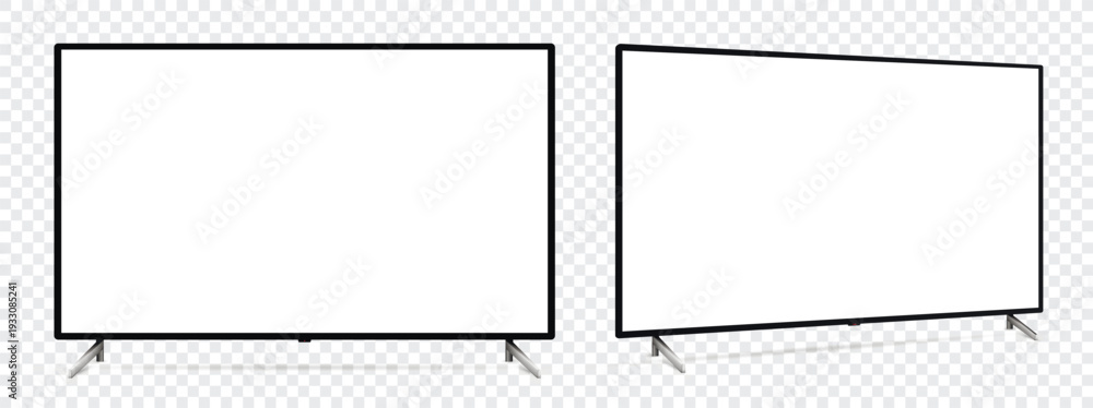 Fototapeta na wymiar - Smart tv mockup. Front and side view with white empty screen on transparent background..