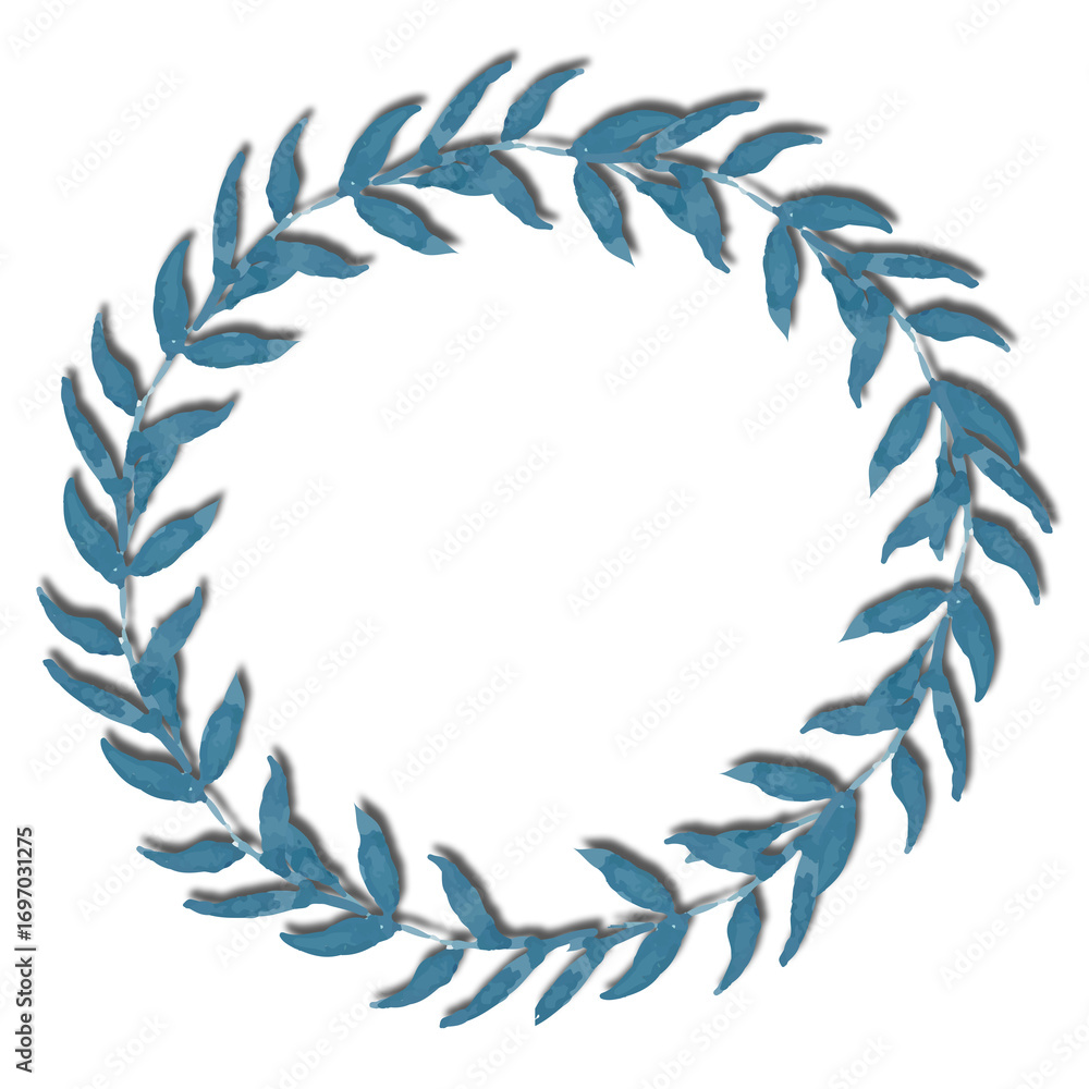 Fototapeta na wymiar - Watercolor leaves wreath in teal on black background.